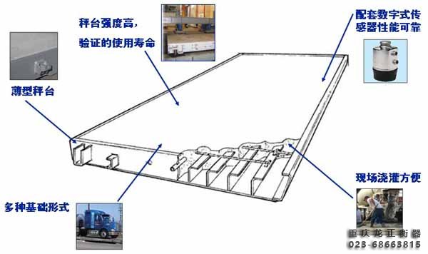 秤臺是根據(jù)橋梁的結(jié)構(gòu)原理研制而成的,是以碳鋼框架和高標(biāo)號混凝土為主件制作而成的超高強度秤臺。和同類型全鋼制秤臺比較,具有自重大、強度高、穩(wěn)定性好、抗腐能力強、免維護、噪聲小、防雷擊、后期維修費用低、因熱脹冷縮變形小等特點;故目前鋼混數(shù)字式電子地磅以其極高的性價比深得用戶青睞,適應(yīng)惡劣環(huán)境、防腐、防潮、防二次雷擊,是化工、冶金、礦山、港口、碼頭、公用磅、機械加工等行業(yè)高價值大宗貨物稱量的最理想選擇。